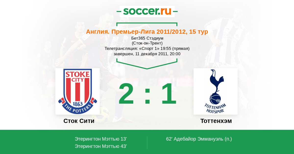 Сток Сити - Тоттенхэм: обзор матча 11 декабря 2011