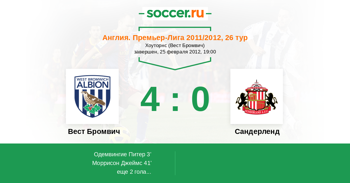 Вест Бромвич - Сандерленд: обзор матча 25 февраля 2012