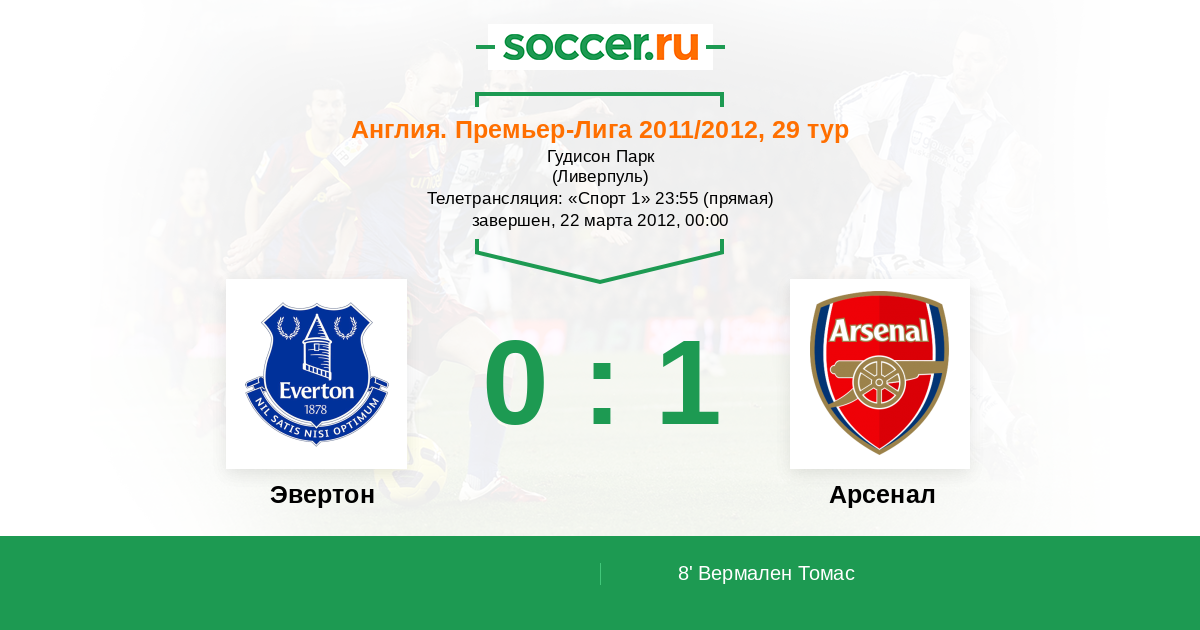 Ливерпуль, Гудисон Парк Телетрансляция: "Спорт 1" 23:55 (прямая)