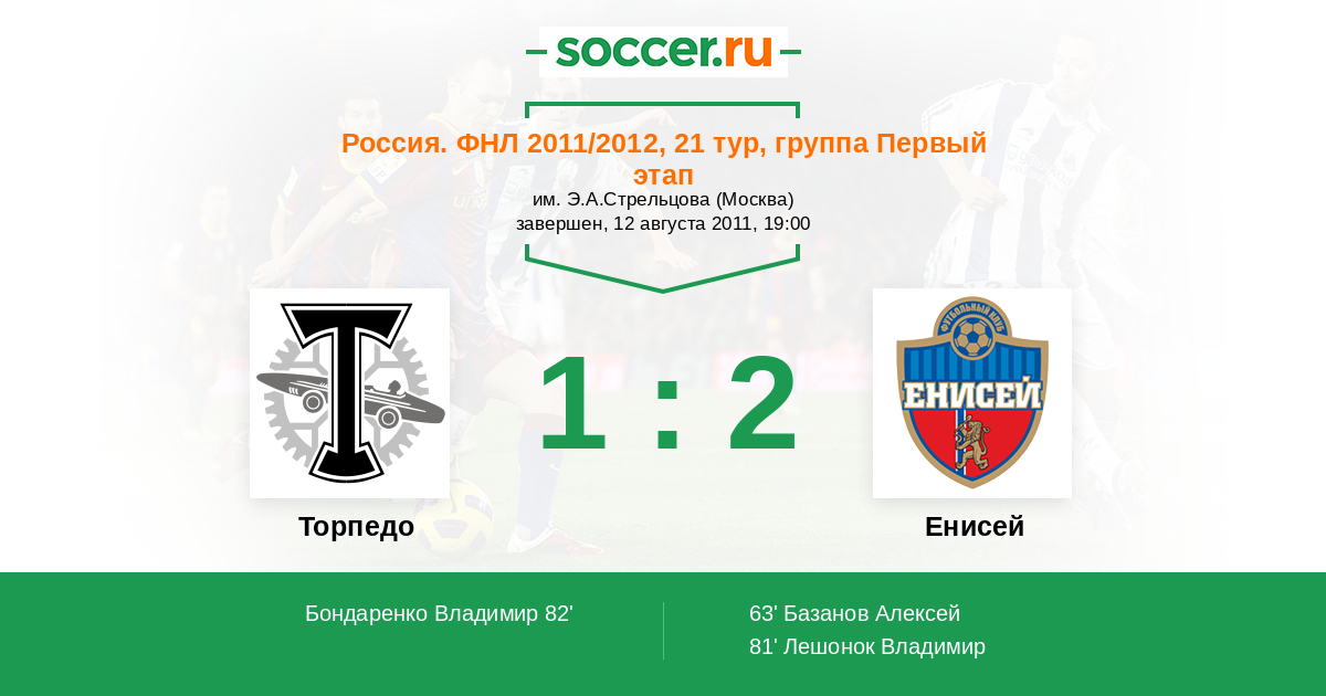 Торпедо - Енисей: обзор матча 12 августа 2011