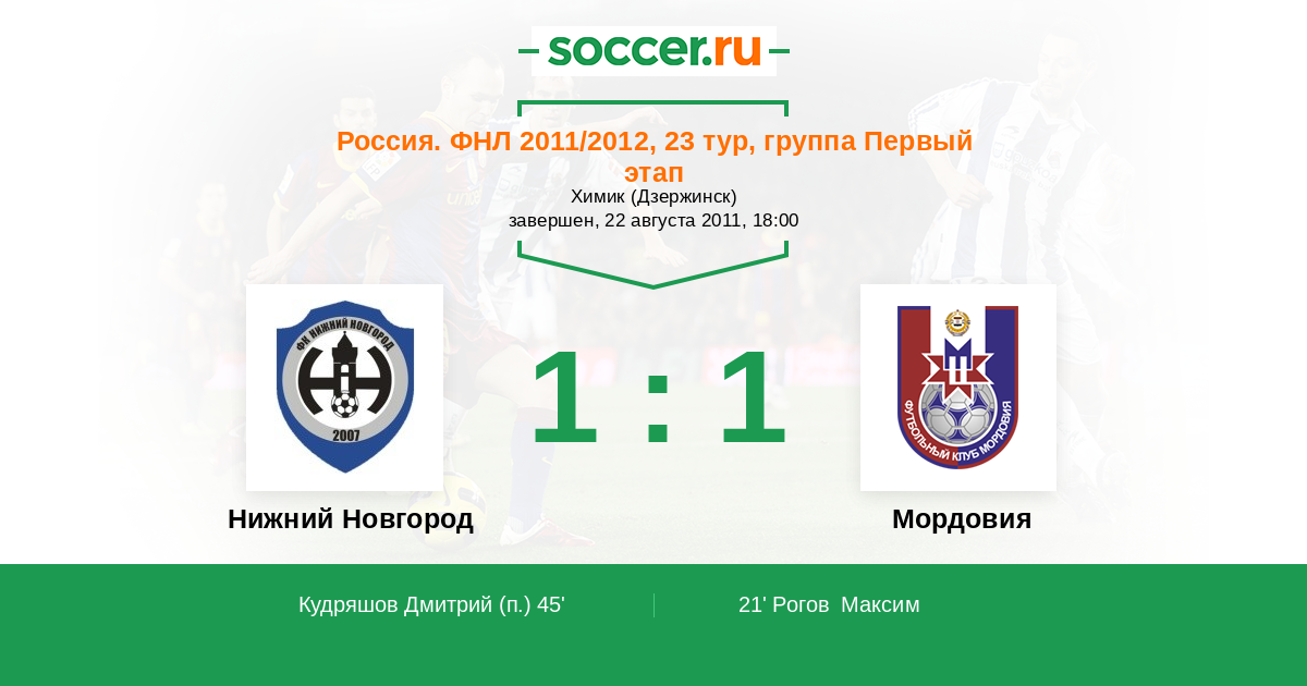 Нижний Новгород - Мордовия: обзор матча 22 августа 2011