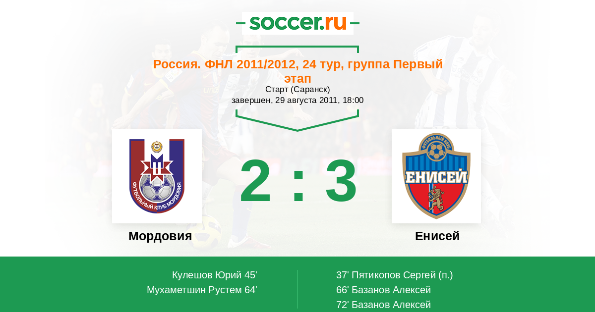 Мордовия - Енисей: обзор матча 29 августа 2011