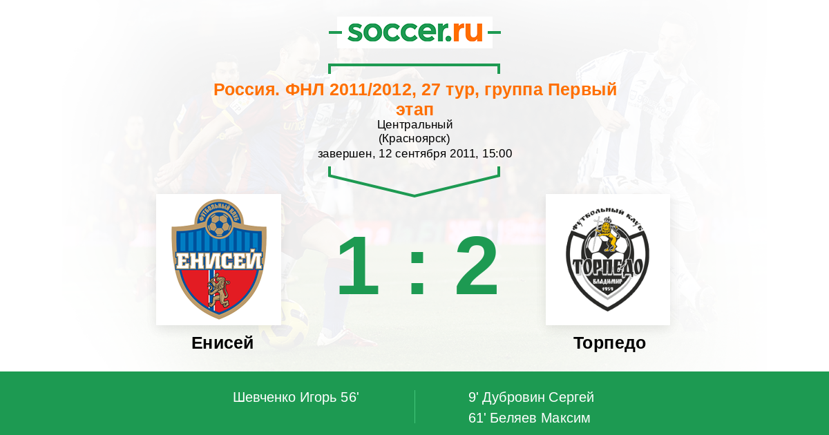 Енисей - Торпедо: обзор матча 12 сентября 2011
