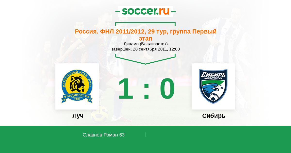 Луч - Сибирь: обзор матча 28 сентября 2011