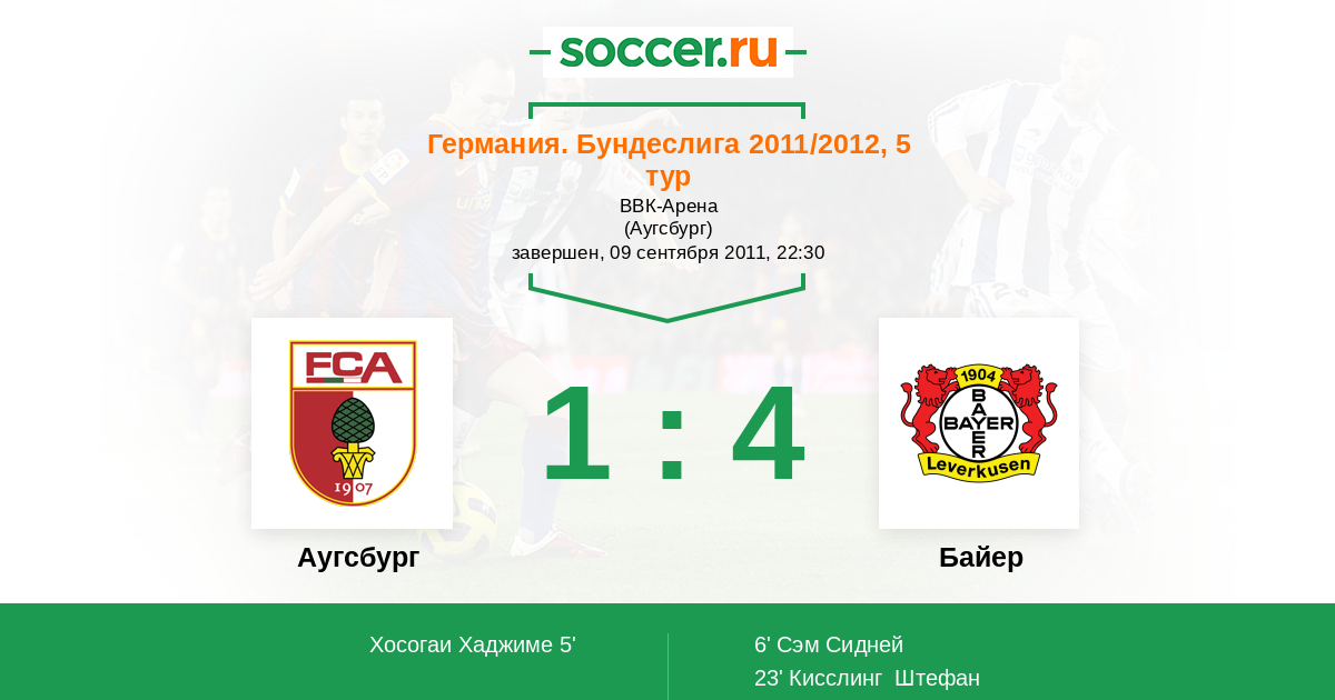 Аугсбург - Байер: обзор матча 9 сентября 2011