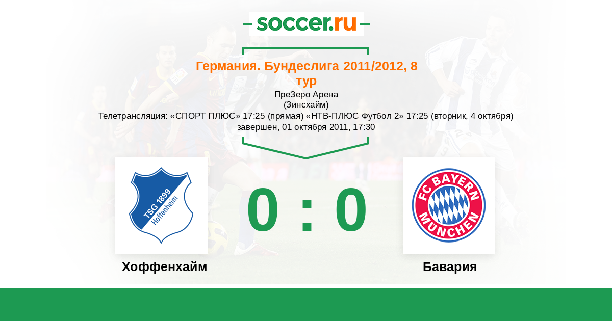 Зинсхайм, ПреЗеро Арена Телетрансляция: "СПОРТ ПЛЮС" 17:25 (прямая) "НТВ-ПЛЮС Футбол 2" 17:25 (вторник, 4 октября)