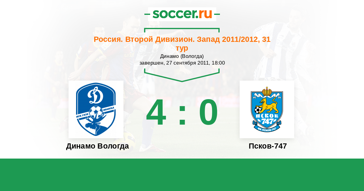Динамо Вологда - Псков-747: обзор матча 27 сентября 2011