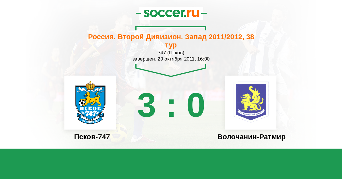 Псков-747 - Волочанин-Ратмир: обзор матча 29 октября 2011