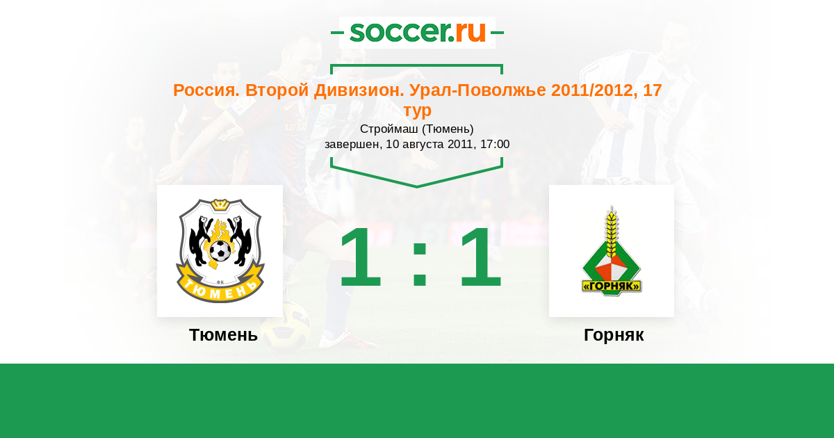 Тюмень - Горняк: обзор матча 10 августа 2011