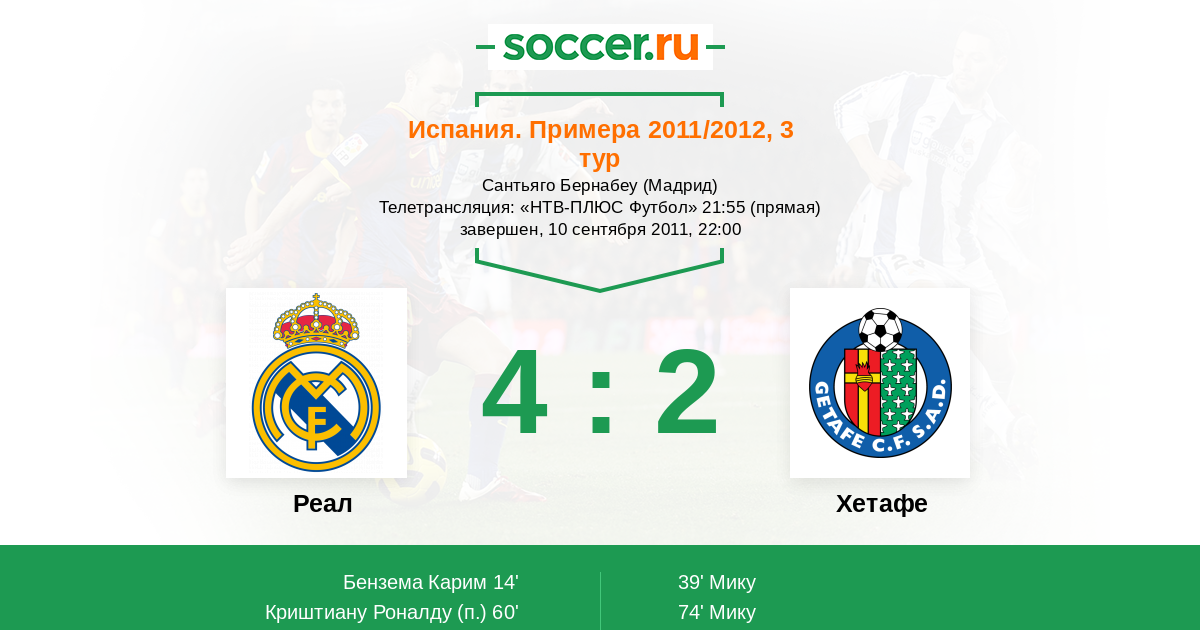 Реал - Хетафе: обзор матча 10 сентября 2011