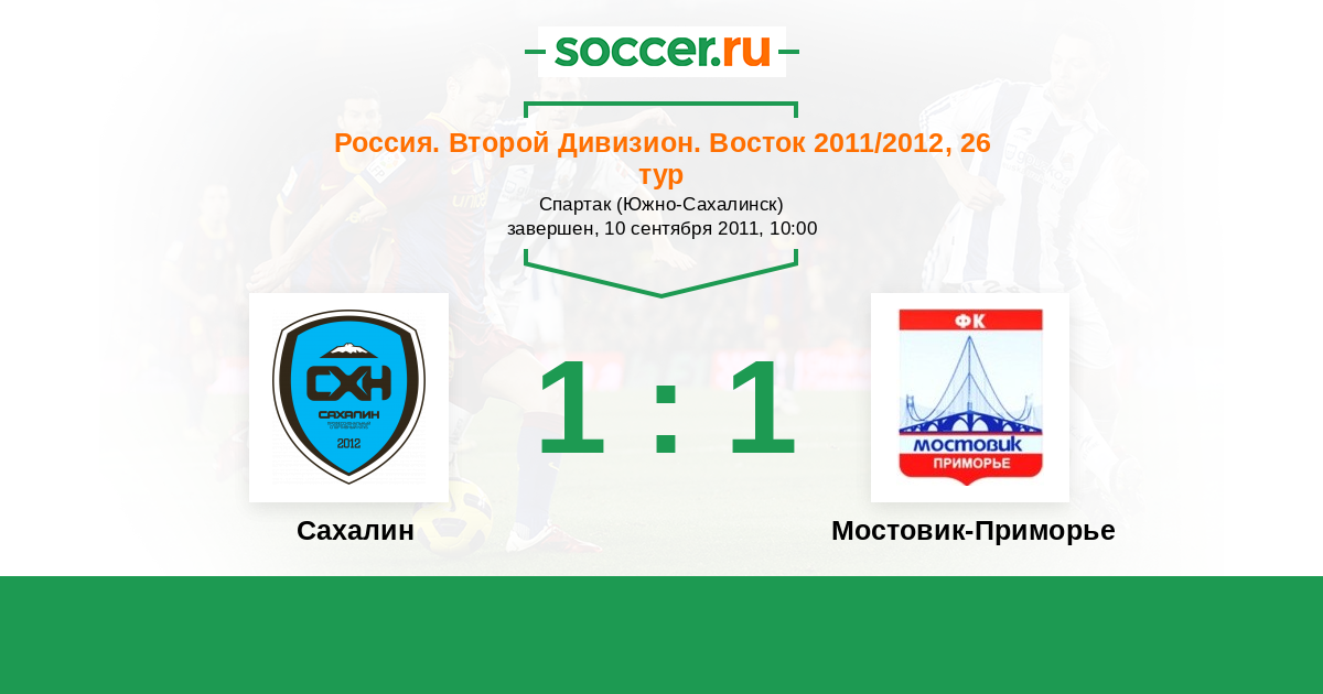 Сахалин - Мостовик-Приморье: обзор матча 10 сентября 2011