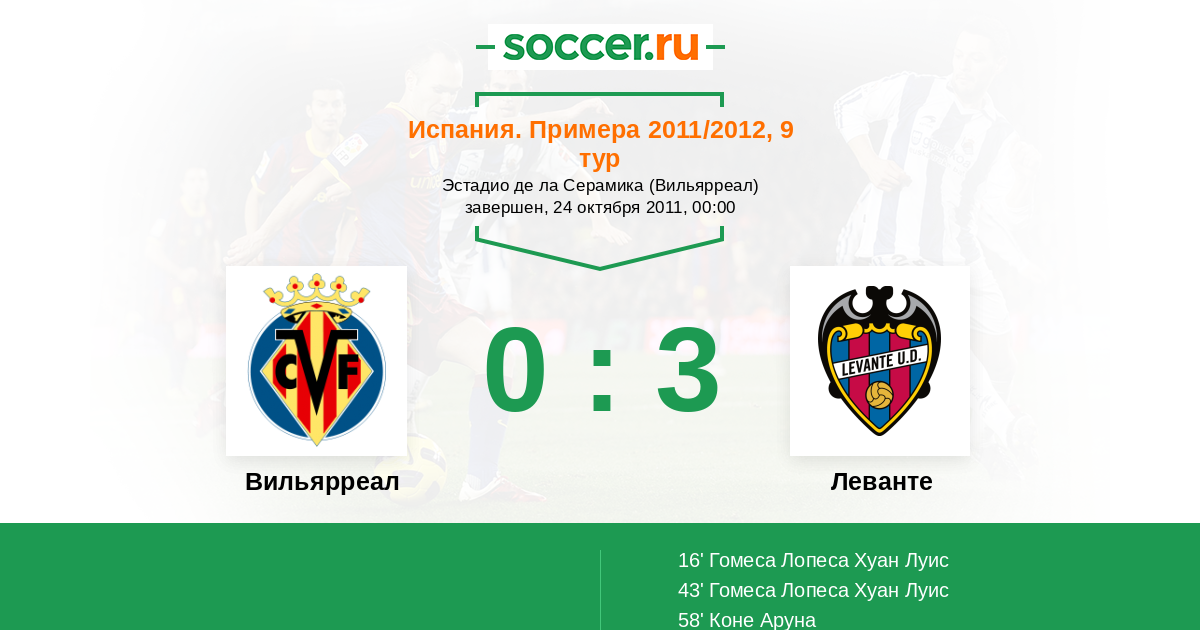 Вильярреал - Леванте: обзор матча 24 октября 2011
