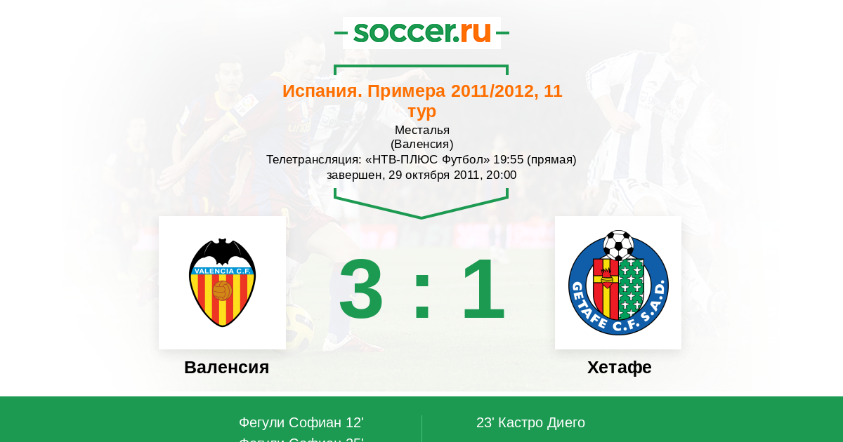 Валенсия - Хетафе: обзор матча 29 октября 2011