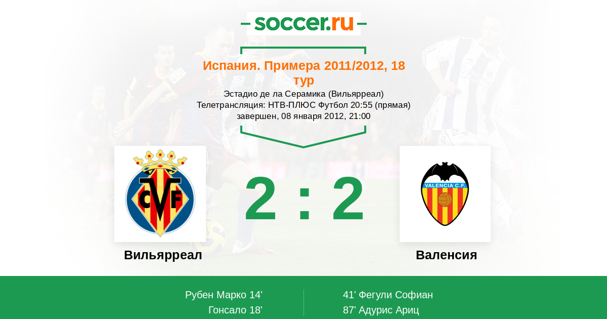 Вильярреал, Эстадио де ла Серамика Телетрансляция: НТВ-ПЛЮС Футбол 20:55 (прямая)