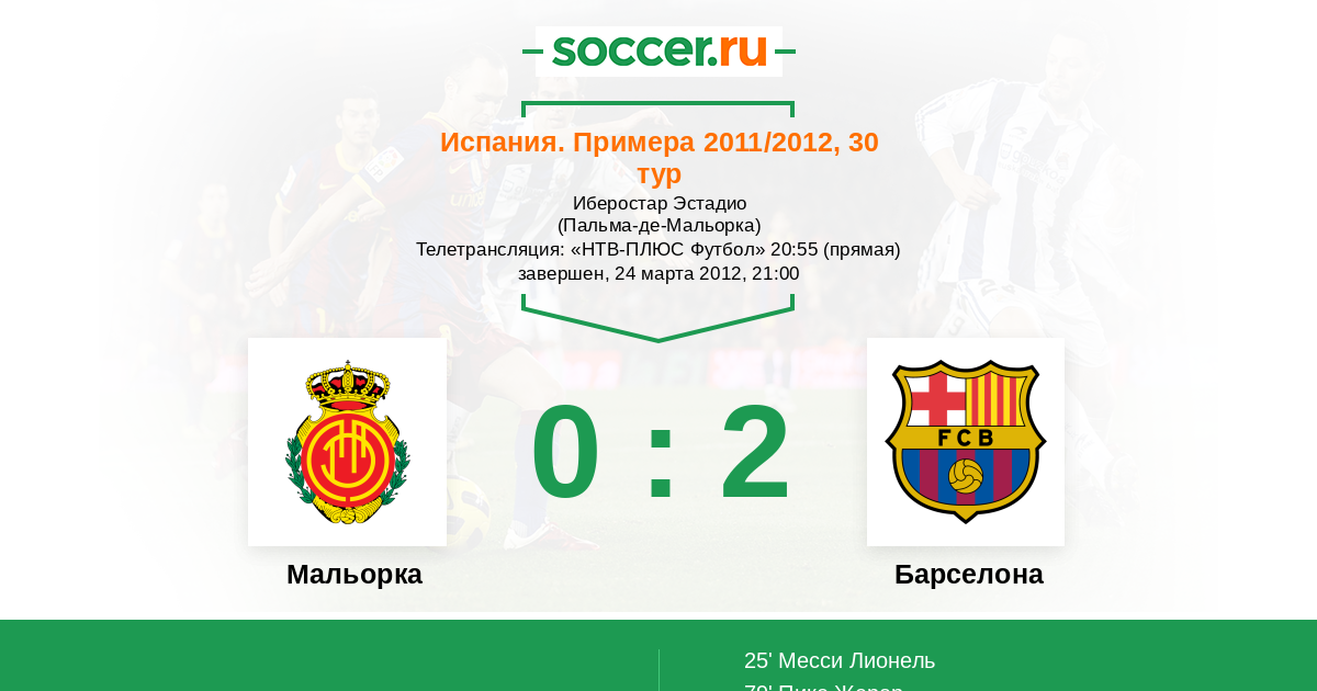 Мальорка - Барселона: обзор матча 24 марта 2012