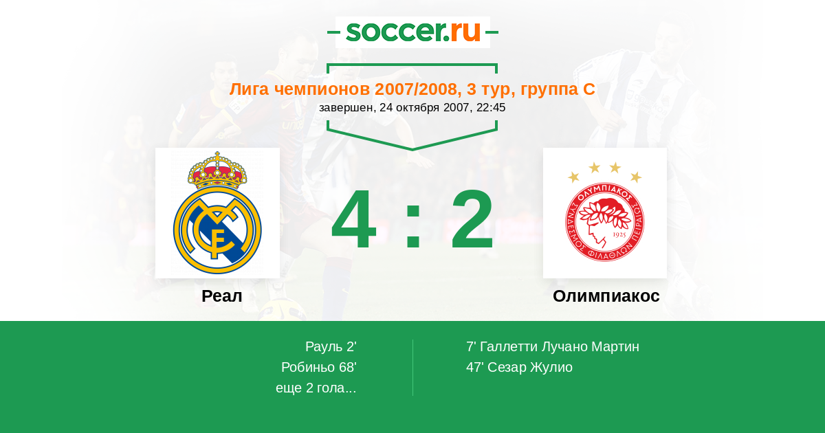 Реал - Олимпиакос: обзор матча 24 октября 2007