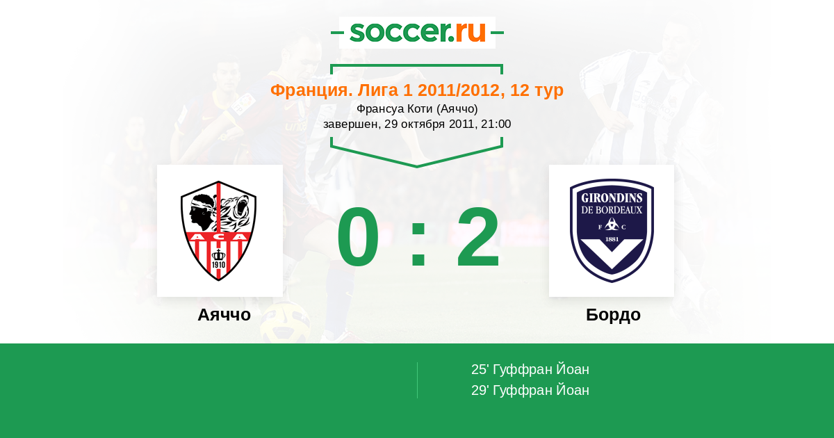 Аяччо - Бордо: обзор матча 29 октября 2011