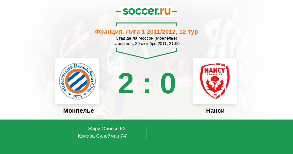 Монпелье - Нанси: обзор матча 29 октября 2011