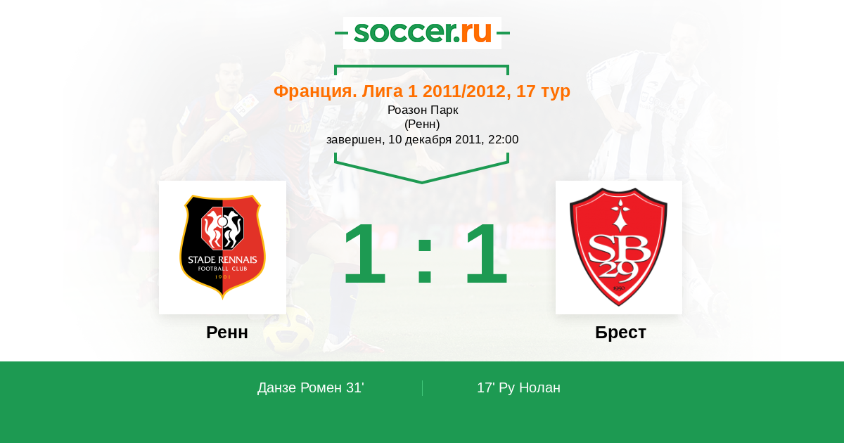 Ренн - Брест: обзор матча 10 декабря 2011