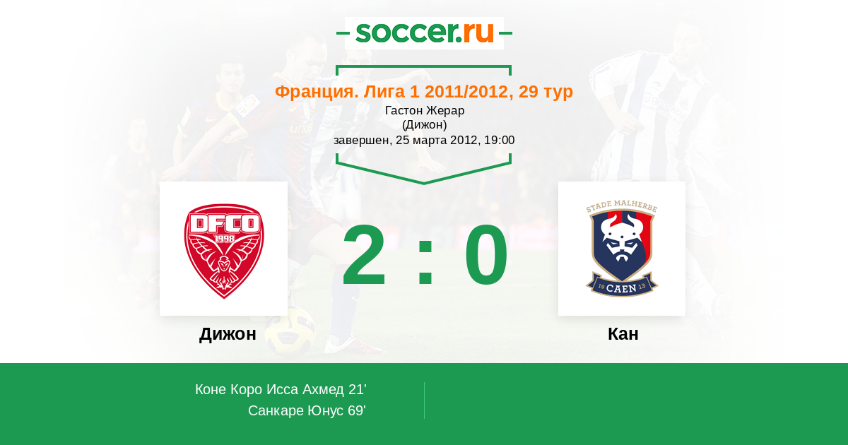 Дижон - Кан: обзор матча 25 марта 2012