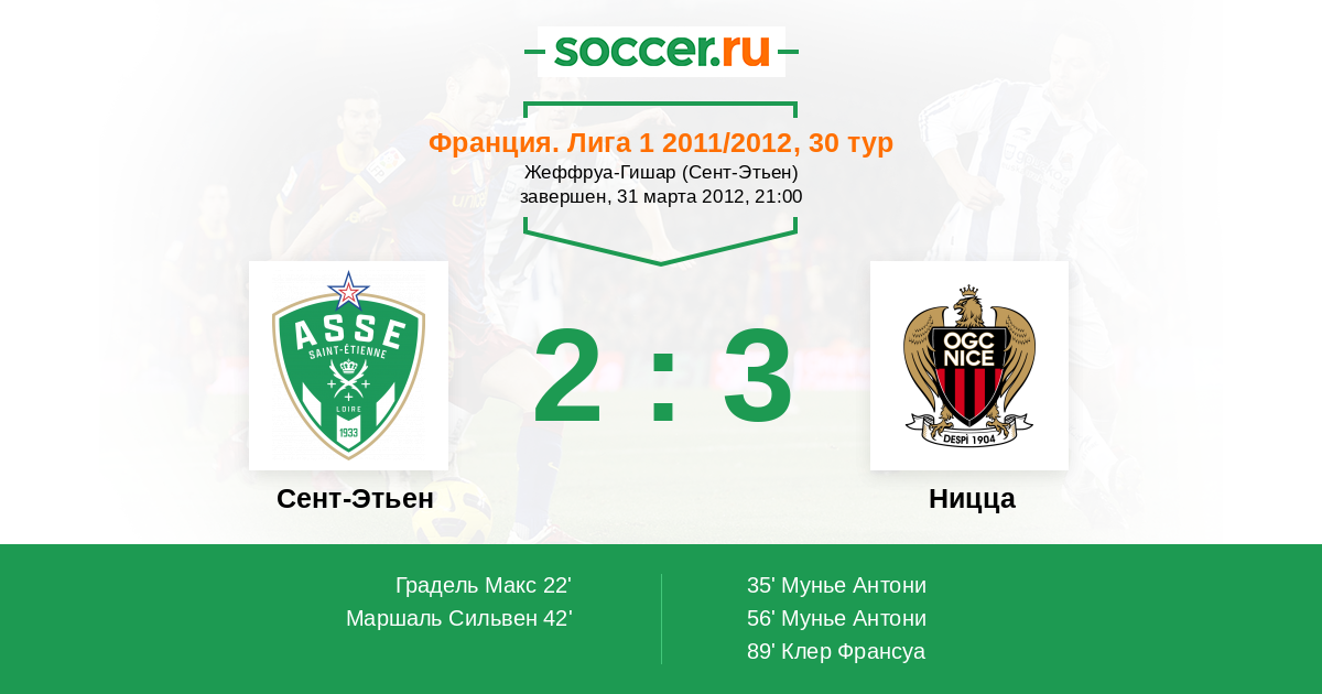 Сент-Этьен - Ницца: обзор матча 31 марта 2012