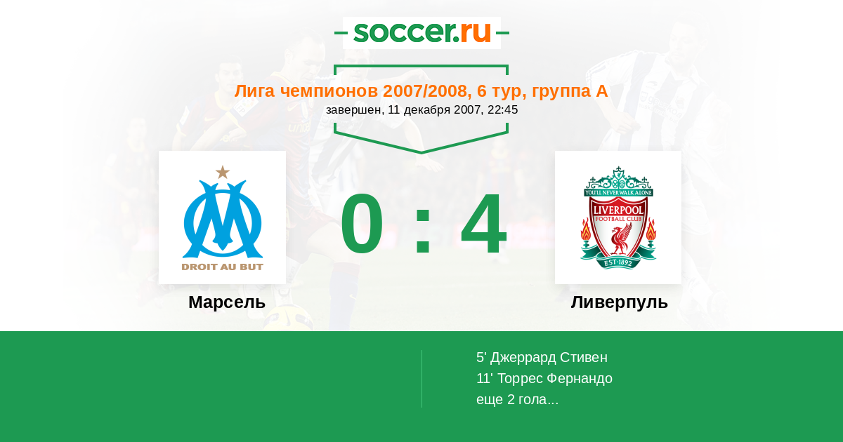 Марсель - Ливерпуль: обзор матча 11 декабря 2007