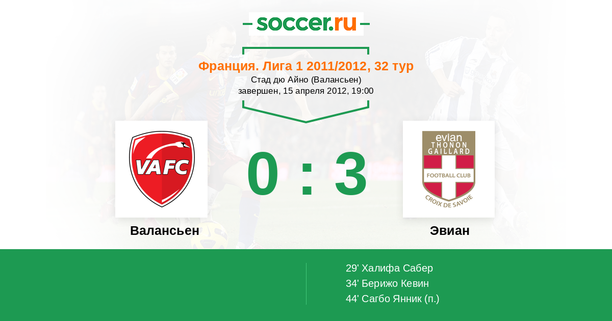 Валансьен - Эвиан: обзор матча 15 апреля 2012