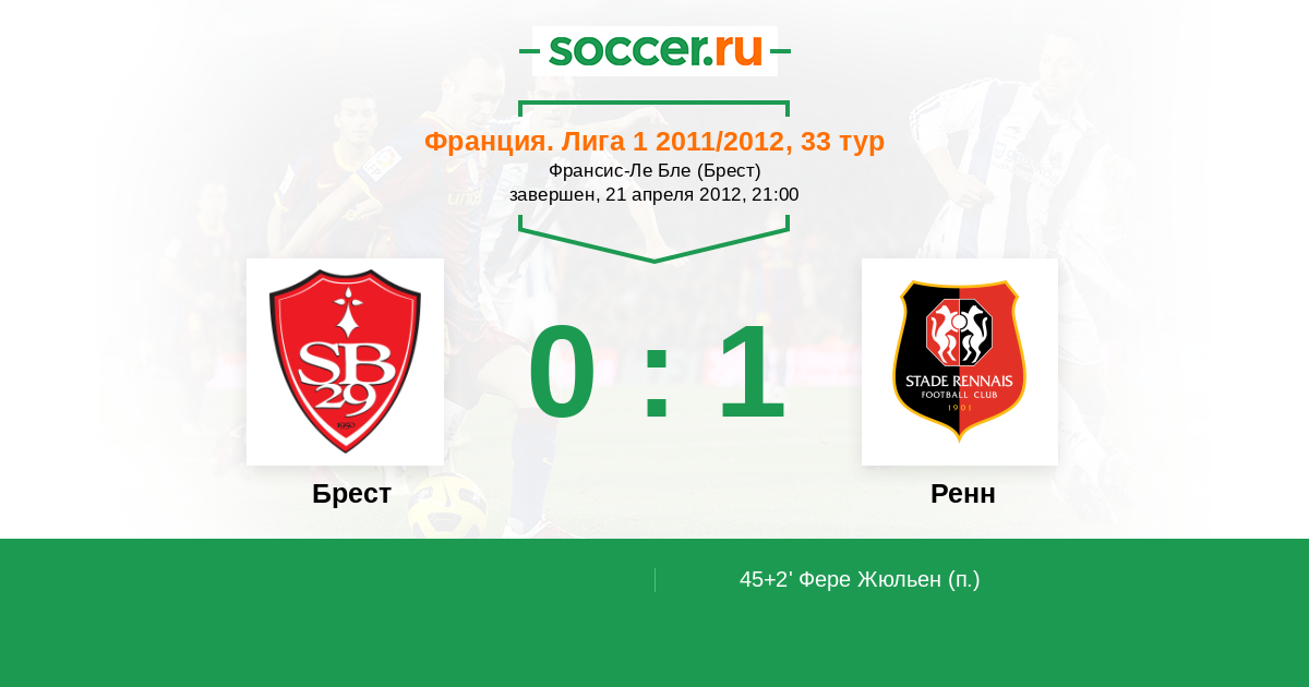 Брест - Ренн: обзор матча 21 апреля 2012