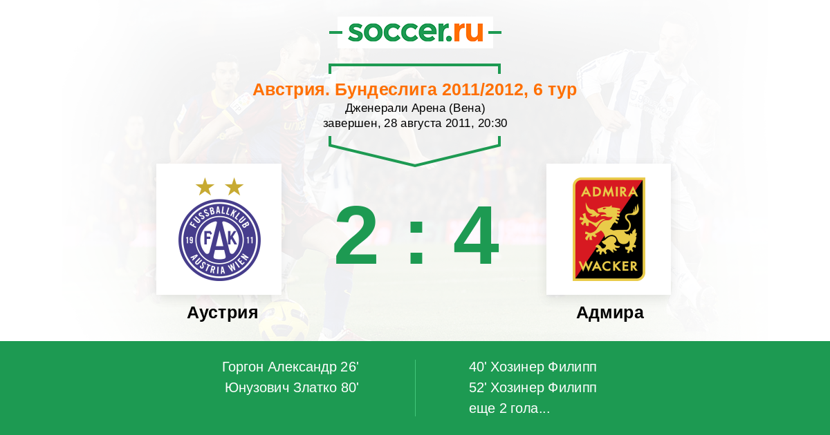 Аустрия - Адмира: обзор матча 28 августа 2011