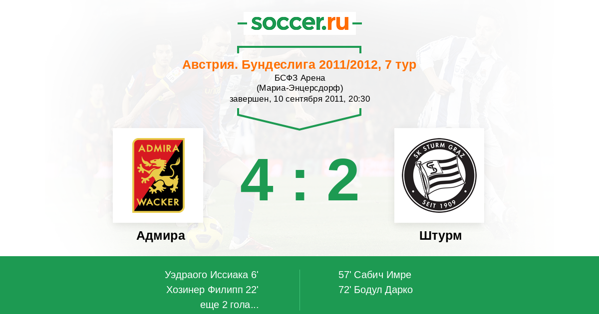 Адмира - Штурм: обзор матча 10 сентября 2011