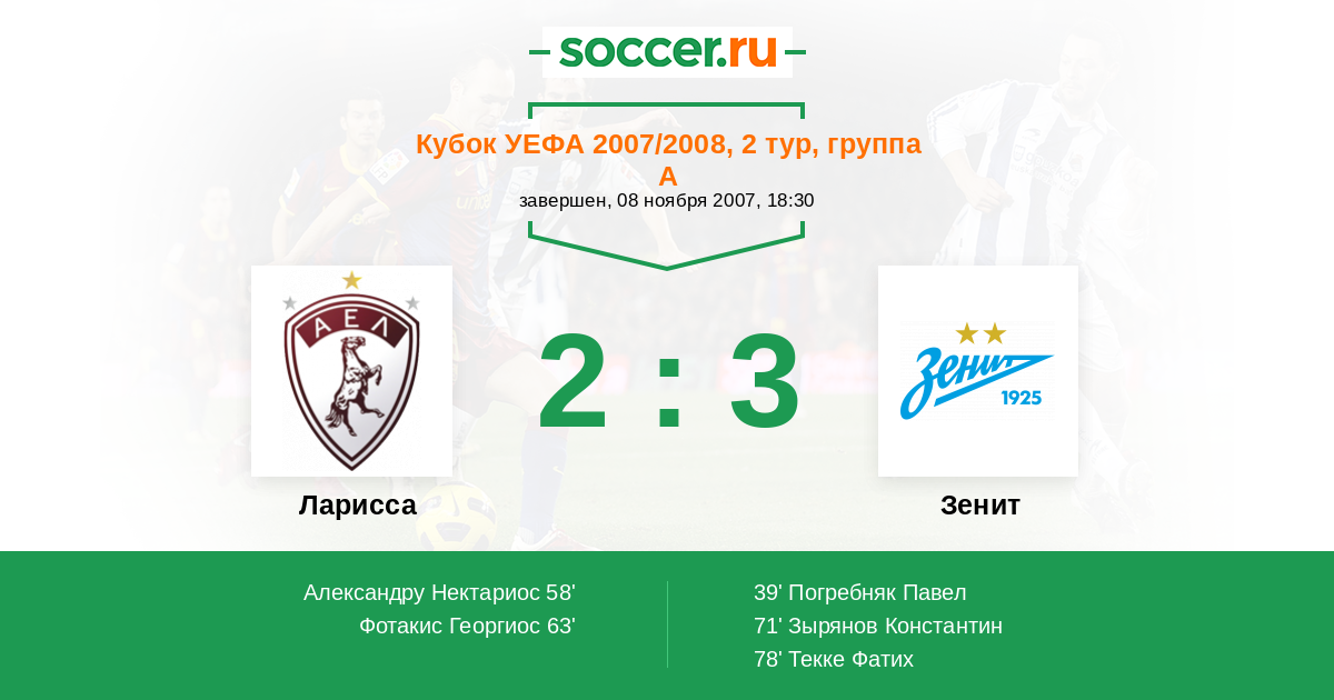 Ларисса - Зенит: обзор матча 8 ноября 2007