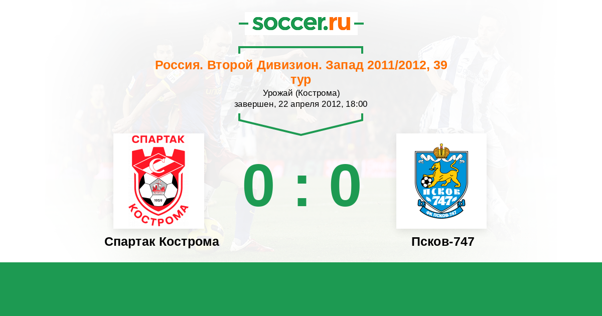 Спартак Кострома - Псков-747: обзор матча 22 апреля 2012