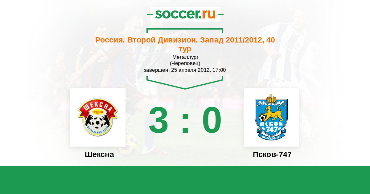 Шексна - Псков-747: обзор матча 25 апреля 2012