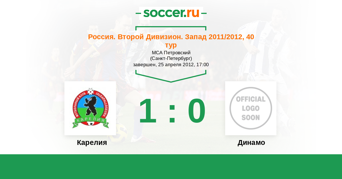 Карелия - Динамо: обзор матча 25 апреля 2012