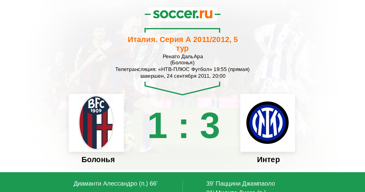 Болонья - Интер: обзор матча 24 сентября 2011