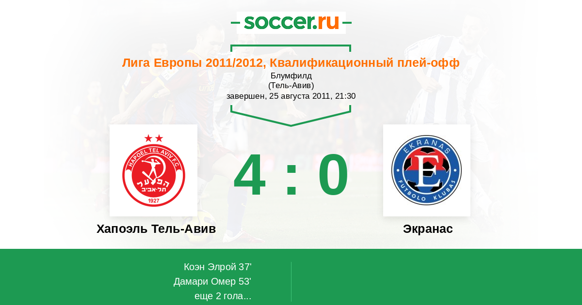 Хапоэль Тель-Авив - Экранас: обзор матча 25 августа 2011