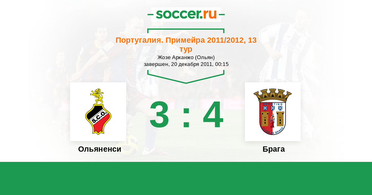 Ольяненси - Брага: обзор матча 20 декабря 2011