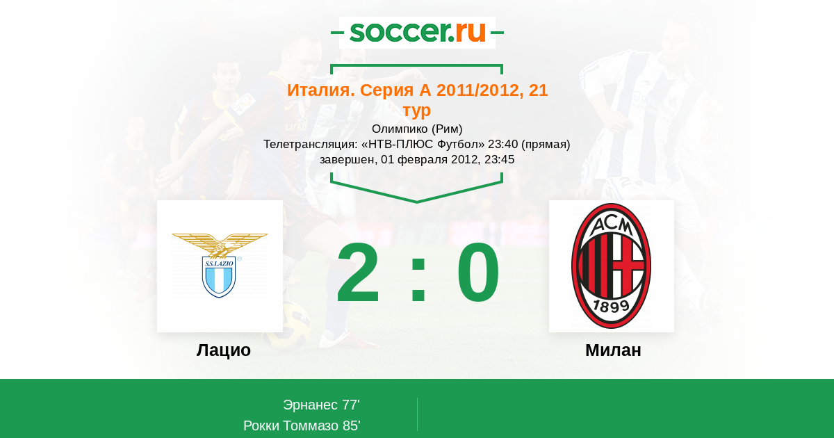 Рим, Олимпико Телетрансляция: "НТВ-ПЛЮС Футбол" 23:40 (прямая)