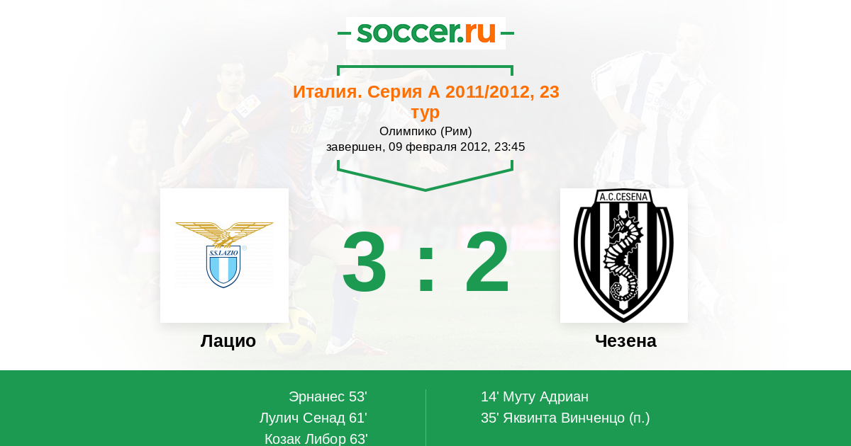 Лацио - Чезена: обзор матча 9 февраля 2012