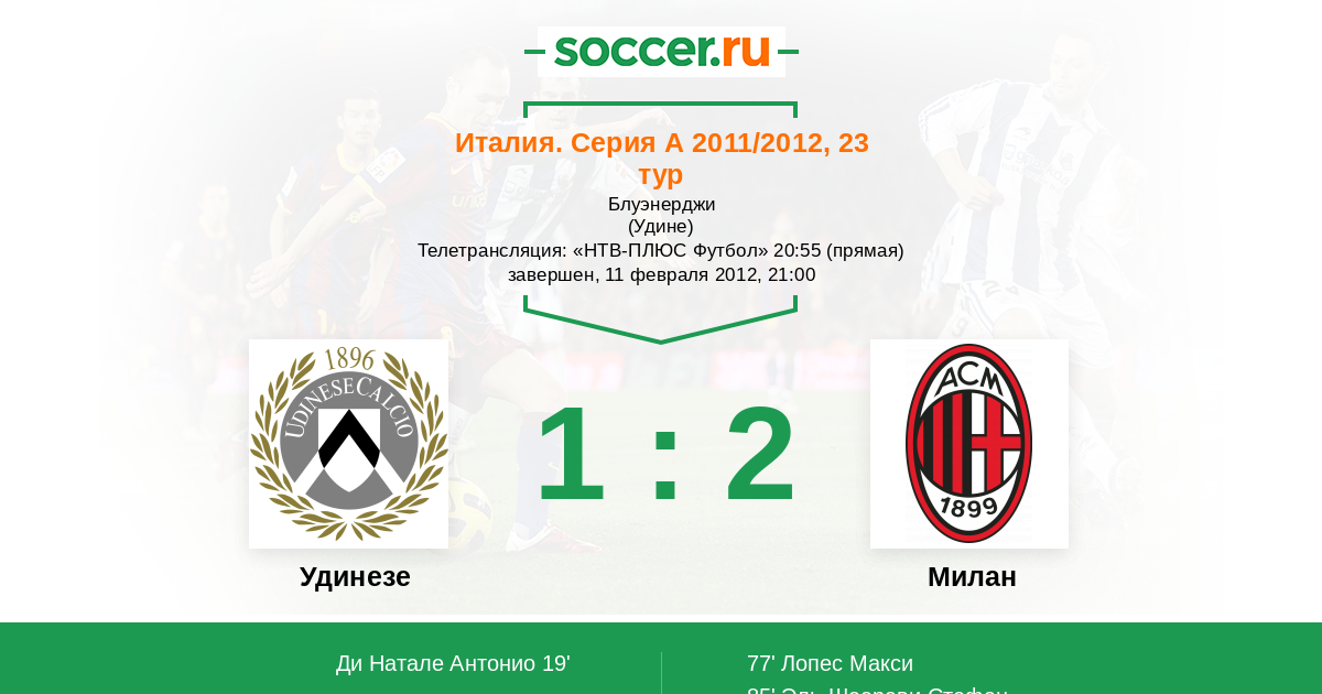 Удинезе - Милан: обзор матча 11 февраля 2012