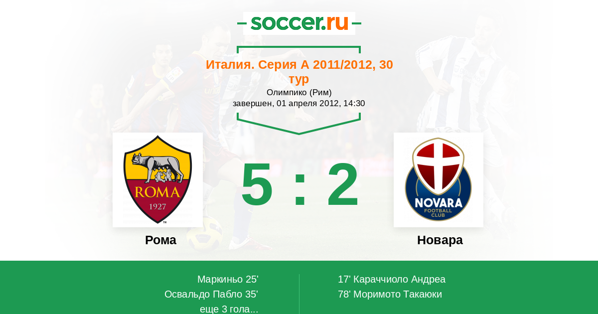 Рома - Новара: обзор матча 1 апреля 2012