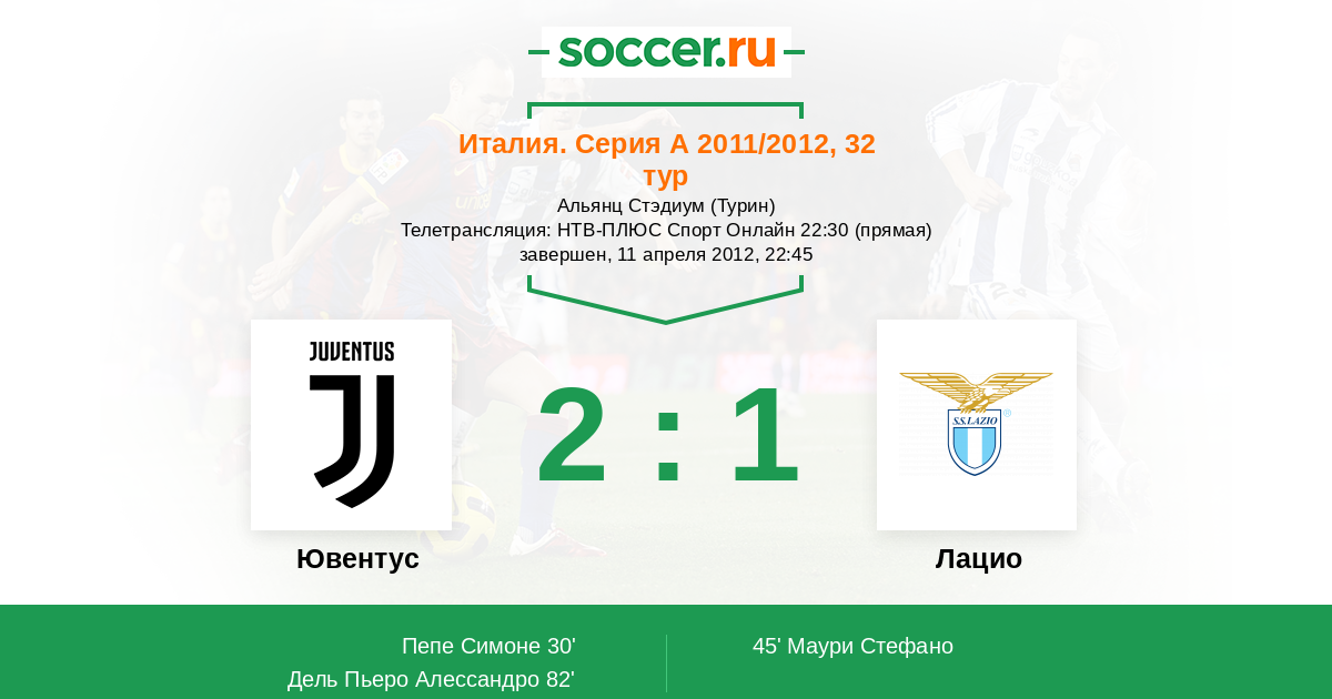 Ювентус - Лацио: обзор матча 11 апреля 2012