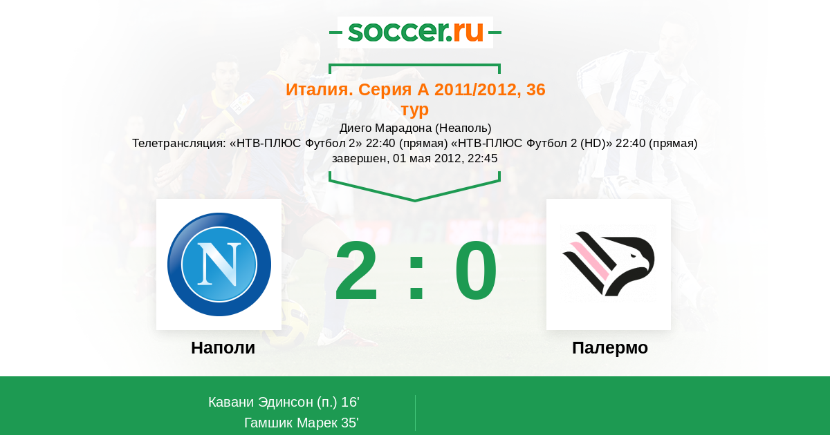 Наполи - Палермо: обзор матча 1 мая 2012