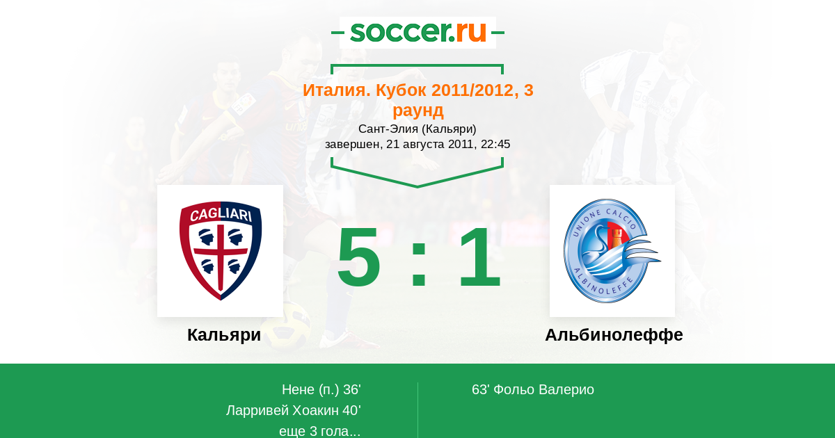 Кальяри - Альбинолеффе: обзор матча 21 августа 2011