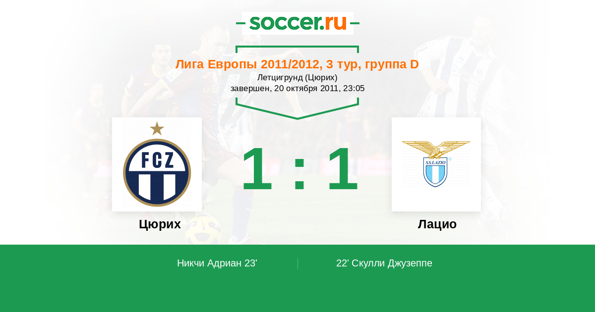 Цюрих - Лацио: обзор матча 20 октября 2011