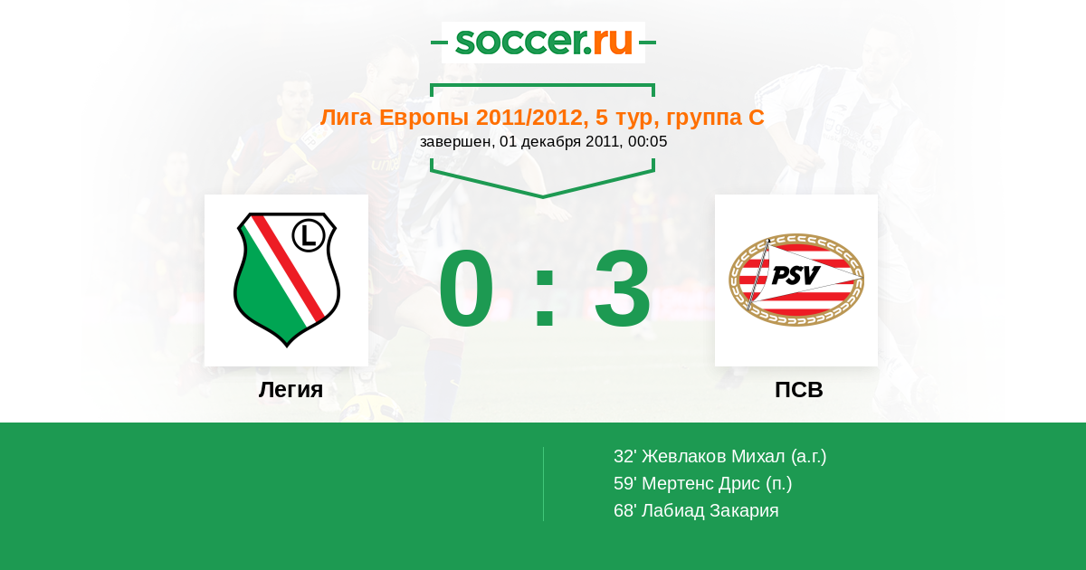 Легия - ПСВ: обзор матча 1 декабря 2011