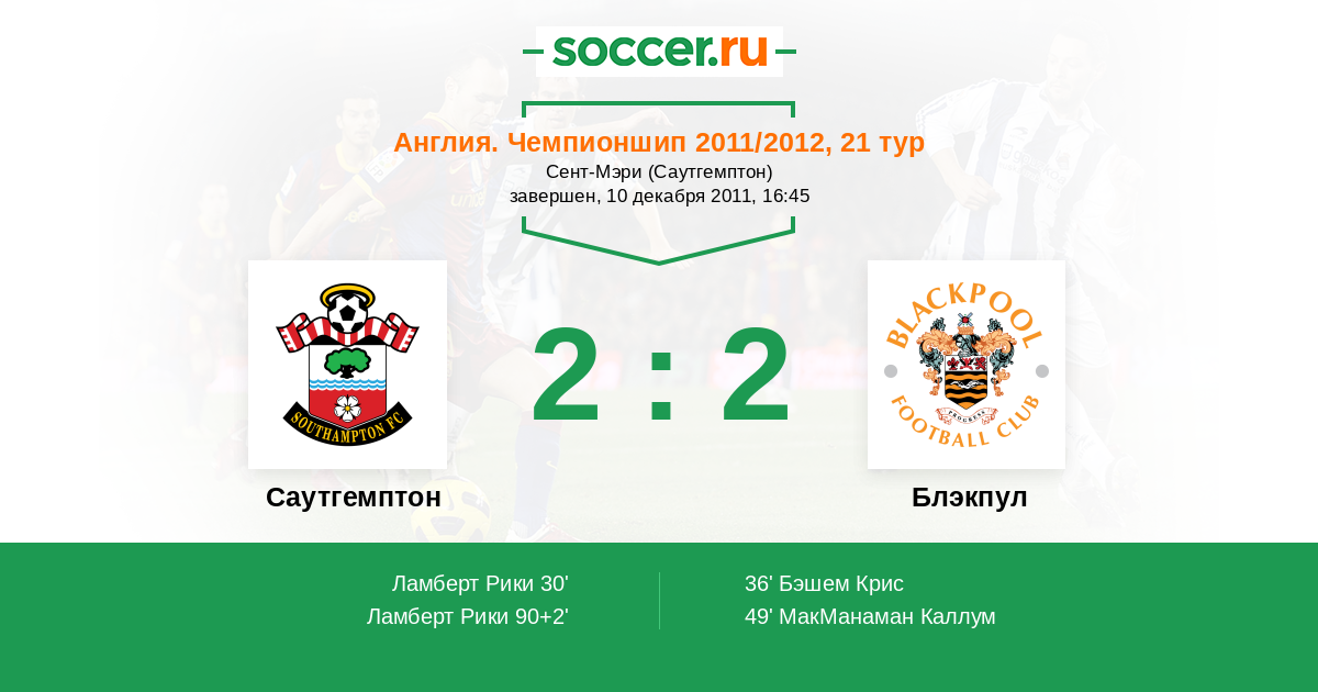 Саутгемптон - Блэкпул: обзор матча 10 декабря 2011