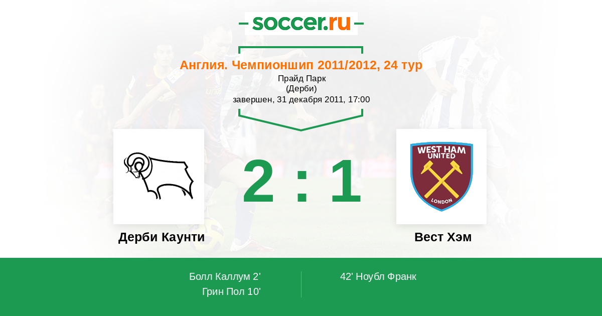 Дерби Каунти - Вест Хэм: обзор матча 31 декабря 2011
