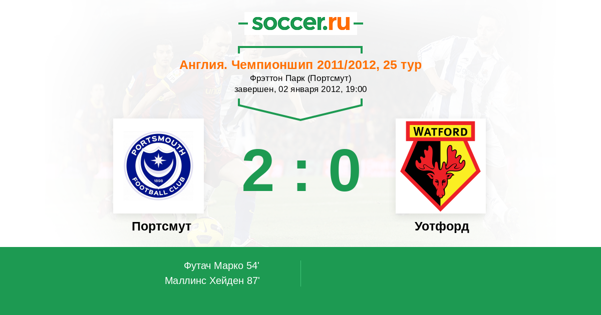 Портсмут - Уотфорд: обзор матча 2 января 2012