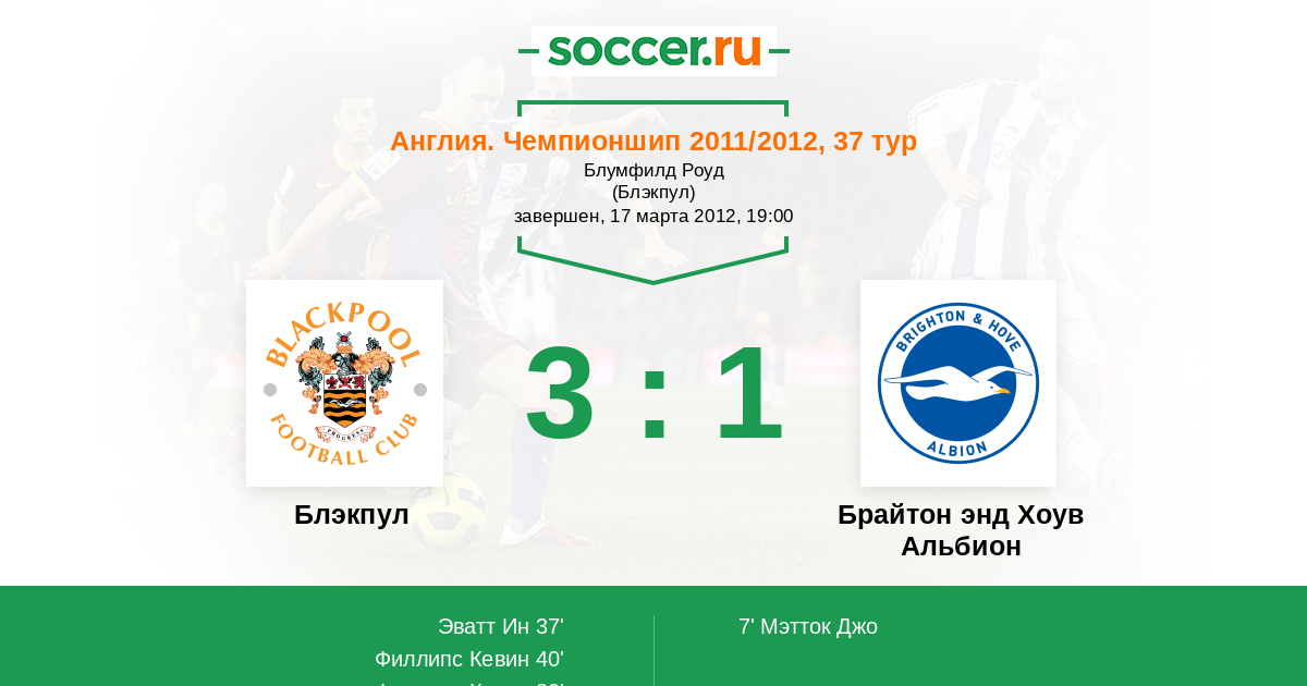 Блэкпул - Брайтон энд Хоув Альбион: обзор матча 17 марта 2012